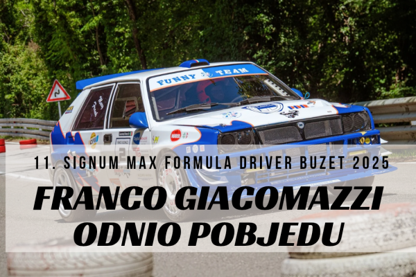 Talijan Franco Giacomazzi (Funny team s. s.d. arl) pobjednik je “11. Signum Max Formula Driver Buzet 2025.” On je u svojoj Lancia Delta Evo Proto najbrže prošao 4400 metara dugom buzetskom stazom Most – Svi Sveti s ukupnim vremenom od 5:38,270 minuta. Sa zaostatkom od 1,022 sekunde, na drugo mjesto se plasirao njegov sunarodnjak Marco Mazzoni (AK Buzet autosport) u Ford Sierri, a Hrvoje Belinić (AK Titan) u Renault Cliu zauzeo je treće mjesto zaostavši 5,491 sekundi za pobjednikom. U…